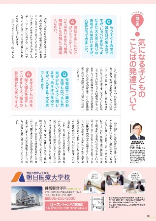言語聴覚士を目指そうと思っている方、これから子育てをしていく方、子育て真っ最中でお悩み中の方、毎月掲載されますので参考にして頂ければ幸いです。【言語聴覚学科】