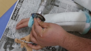 親指の付け根が折れるベネット骨折は、伸縮テーピングを使って、親指を引っ張る難しい固定法の一つです。