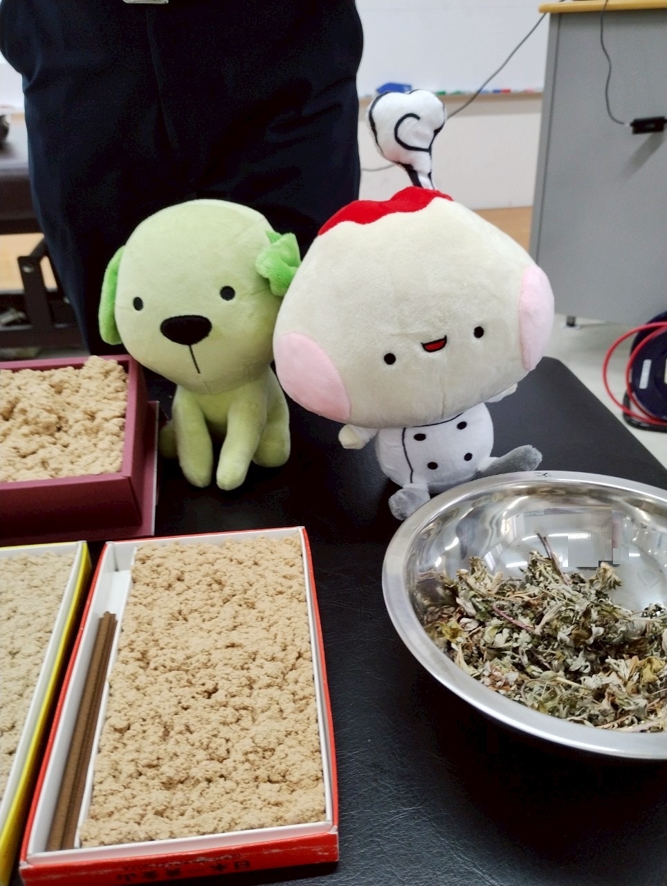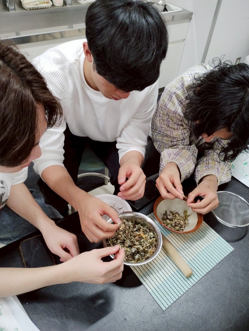 鍼灸学科1年生は毎年『もぐさ』作りを授業で体験します。